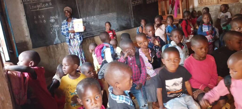 Gerade noch rechtzeitig sind vier 20 Kilo schwere Schachteln mit Schulbüchern für den Französisch- und Rechenunterricht in Ikoma angekommen. Sie werden rege gebraucht, das zeigen Bilder aus der Vorschulklasse (École maternelle) und der 1. Klasse. Geplant war ein viel grösserer Transport. Die Eroberung grosser Teile des Nord- und Südkivu durch die M23 hat dies zunichte gemacht.